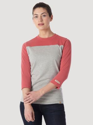 Women S Wrangler Riggs Workwear Three Quarter Sleeve Colorblocked Performance T Shirt In Berry Grey